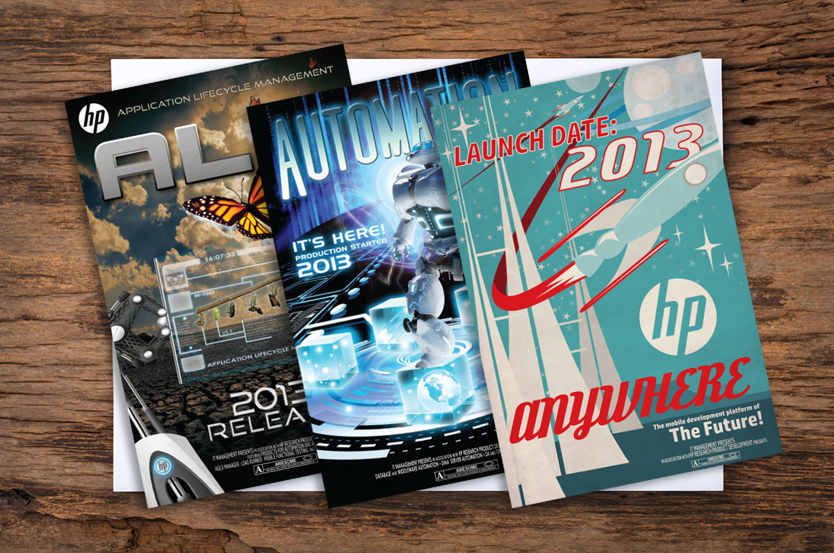 It seems like we’re always collaborating with HP on something around here, and it’s fantastic. Here’s a series of movie-inspired posters we created for their internal office spaces. We regularly work different departments HPE (HP recently split and formed a new company, HP Enterprise) on video production and copywriting projects, too.