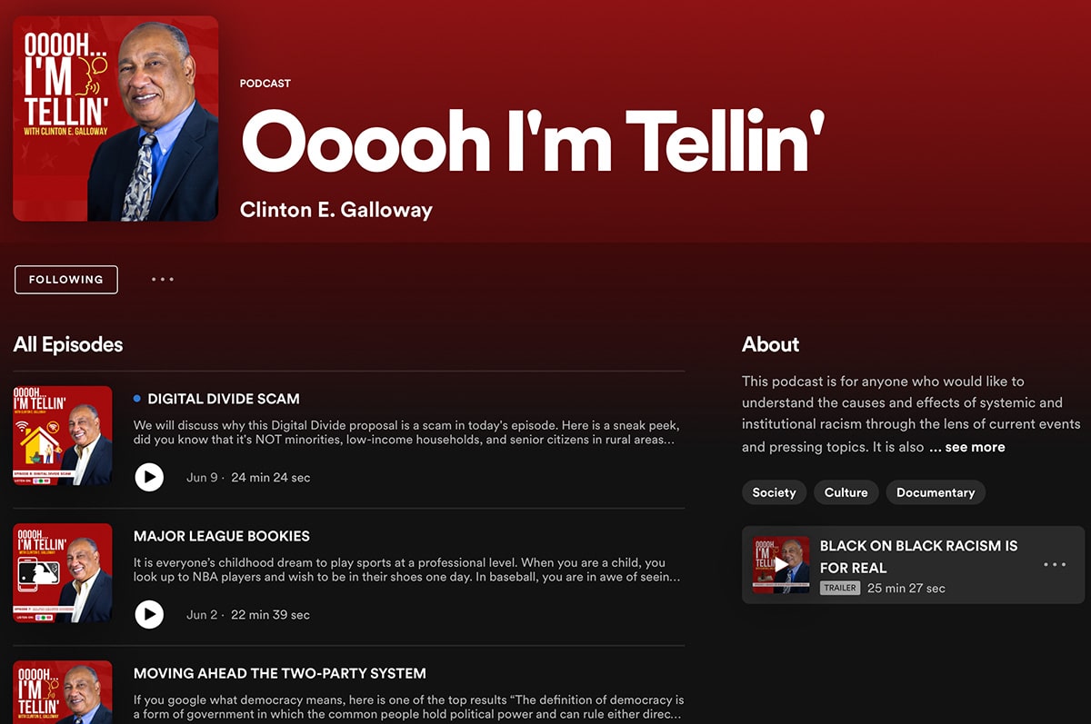 Clinton Galloway is famous. As a unanimous 9-0 winner of a US Supreme Court case and author of two books telling his story of fighting extreme corruption in south central LA, Clinton Galloway wanted to get his message to more people with a weekly podcast show. “Ooooh I’m Tellin’ with Clinton Galloway was born.